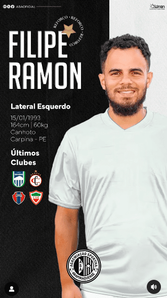 Um deles é o experiente lateral-esquerdo Filipe Ramon, de 32 anos. Natural de Carpina-PE, Filipe traz em sua bagagem passagens por clubes como Campinense, Central de Caruaru-PE, Serra Branca e CSE, além de conquistas importantes, como os títulos do Campeonato Paraibano em 2016 e 2022 pelo Campinense.