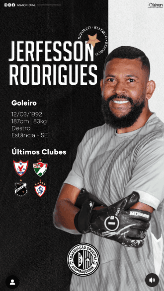 "Jerfesson é outro atleta que traz experiência ao elenco e será mais um jogador para fortalecer nossa defesa. Seja bem-vindo, @JerfessonGoleiro01!", diz a postagem também publicada nas redes sociais do clube.
