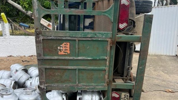Uma caminhonete que transportava carga de botijões de gás tombou, nesta segunda-feira, 22, em um trecho da rodovia AL-220, no povoado Pé Leve, em Limoeiro de Anadia, no Agreste alagoano.