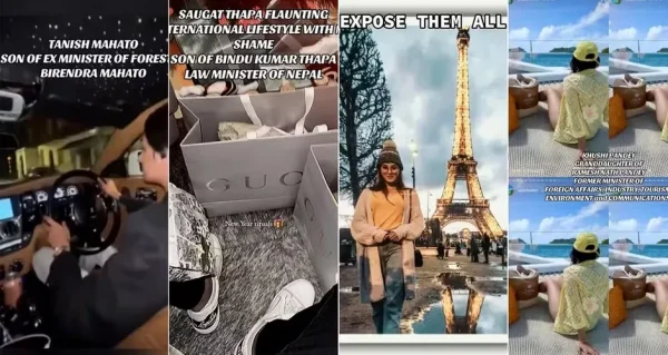 Usuários passaram a criticar a elite nepalesa publicando fotos de filhos de políticos ostentando luxo, enquanto jovens de famílias pobres precisam deixar o país para sustentar seus parentes.