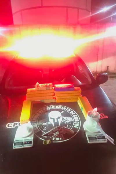 Além dos entorpecentes e da arma, os policiais localizaram materiais que indicam a prática de tráfico de drogas, incluindo oito balanças de precisão, embalagens plásticas utilizadas para fracionamento, duas placas de veículo, um aparelho celular e uma balaclava.