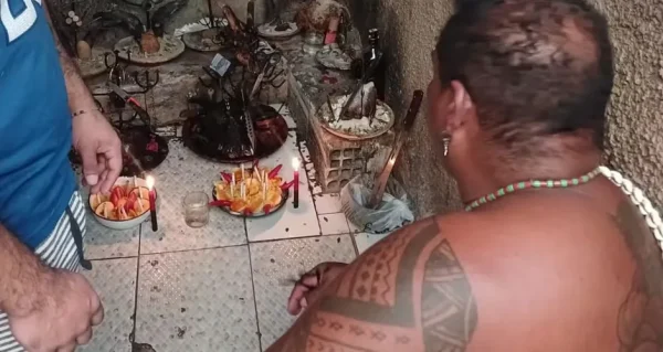 Uma arma foi apreendida junto com o líder religioso no terreiro. A vítima foi liberada do hospital e a previsão, no início da tarde, era que ela prestasse depoimento à polícia nos próximos dias.