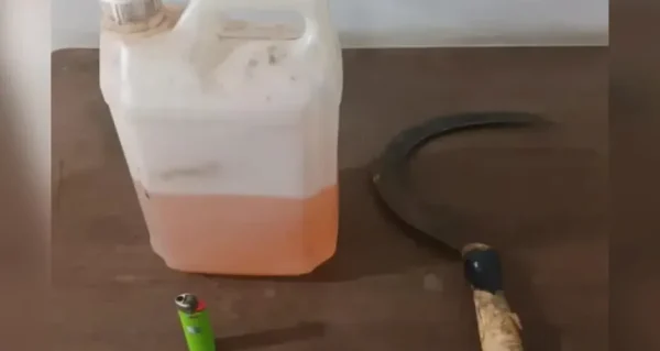 A mãe, de 60 anos, estava na frente do imóvel quando os policiais chegaram. Ela relatou que o filho havia derramado gasolina tanto nela quanto na casa e ameaçado o pai de morte com a foice.