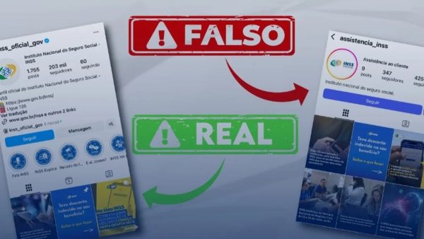 O INSS acrescenta que, no perfil falso mencionado, as postagens espelhadas dos canais oficiais “sugerem facilidades para resolver pendências ou acelerar a liberação de valores referentes aos descontos associativos, para a aplicação de golpes.”