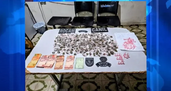 Uma ação rápida da Polícia Militar (PM), com apoio da equipe do Canil, resultou na apreensão de drogas e dinheiro na noite do sábado (19), no bairro Canafístula, em Arapiraca. O caso ocorreu por volta das 19h30, momento em que moradores perceberam a movimentação suspeita de um jovem pelas ruas do bairro e acionaram a polícia.