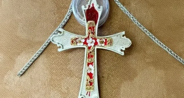A cruz peitoral foi feita a partir da ideia do guardião do santuário apostólico, padre Bruno Silvestrini. Ele é membro da comunidade agostiniana da Sacristia Pontifícia e queria um novo “relicário” para Leão XIV, que seria inserido na cruz peitoral. O papa é devoto do Santo Agostinho e pertence à ordem agostiniana.