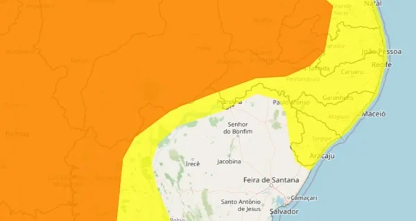 De acordo com o órgão, a previsão é de chuvas com intensidade entre 20 e 30 milímetros por hora, podendo alcançar até 50 mm ao longo do dia. Também são esperados ventos variando entre 40 e 60 km/h, o que pode provocar transtornos pontuais, apesar do baixo risco geral de ocorrências mais graves.