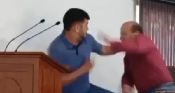 Um vídeo registrou o momento em que os vereadores trocam socos, derrubam cadeiras e são separados por outros servidores.