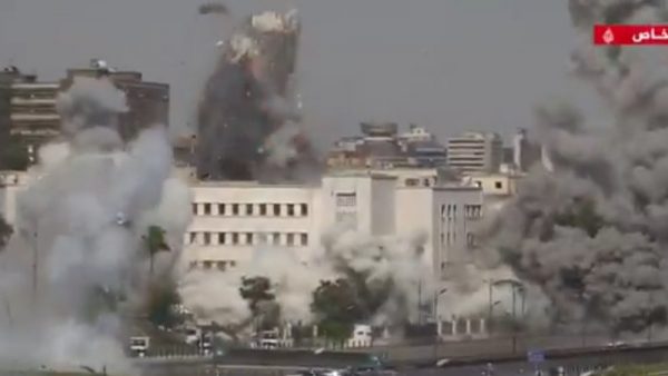 O local, que fica próximo ao Palácio Presidencial sírio, na capital do país, Damasco, foi atingido fortemente. O vídeo (veja acima) mostra uma grande explosão no centro da estrutura do prédio, destroços voando e uma grande nuvem de fumaça se erguendo no horizonte.