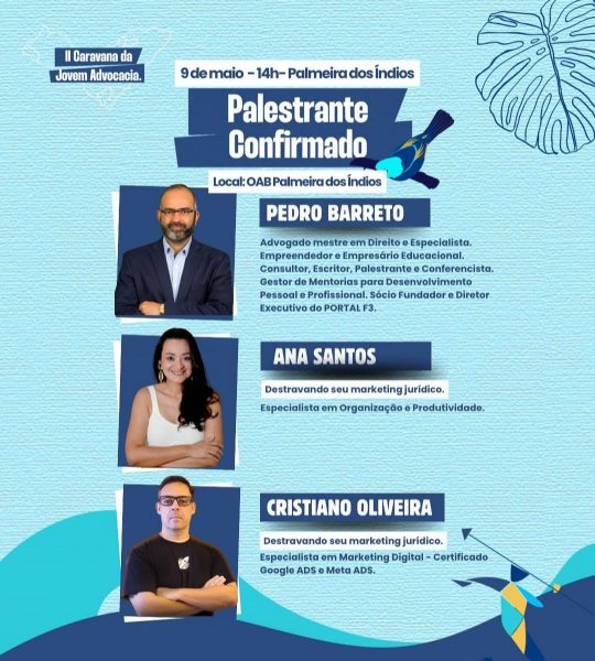 Pedro Barretto (Advogado, Mestre em Direito, MBA/Direito Tributário, triplamente Pós Graduado e Especialista em Coaching) fará parte da caravana.