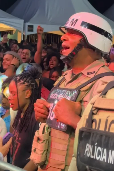 Durante as comemorações pelos 116 anos da cidade de Ituberá (BA), um momento simples, mas carregado de emoção, conquistou as redes sociais: um policial militar foi flagrado em serviço, fardado, cantando de olhos fechados a música “Fogo na Babilônia”, clássico de Edson Gomes, enquanto curtia intensamente a apresentação.