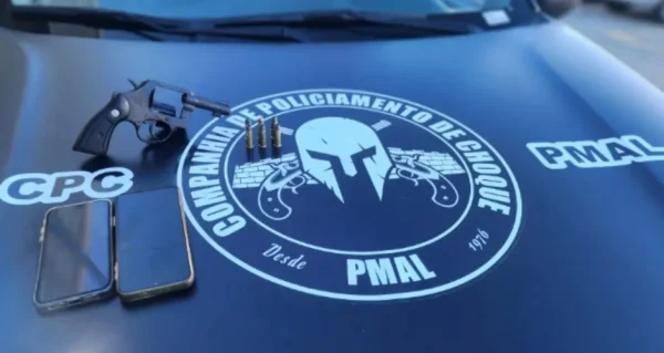 No bairro da Santa Lúcia, em Maceió, uma equipe da Companhia de Policiamento de Choque (CPChoque) localizou um revólver calibre 38 com seis munições intactas, além de dois celulares. A ocorrência aconteceu por volta das 6h, durante operação coordenada pela Secretaria de Segurança Pública (SSP) para cumprimento de mandados de prisão e busca.