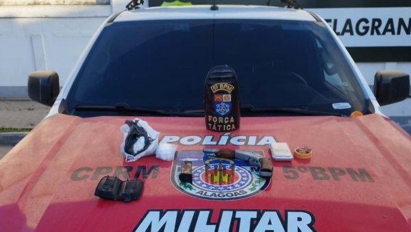 Uma arma de fogo, munições e drogas foram apreendidos por policiais nessa segunda-feira (24), no conjunto Parque das Américas, no Benedito Bentes, em Maceió. O material estava guardado em uma casa e o morador dela prestou esclarecimentos aos militares.