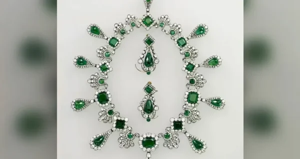 Colar e brincos da imperadora Maria Luisa, segunda esposa de Napoleão Bonaparte, com 32 esmeraldas e 1.138 diamantes;