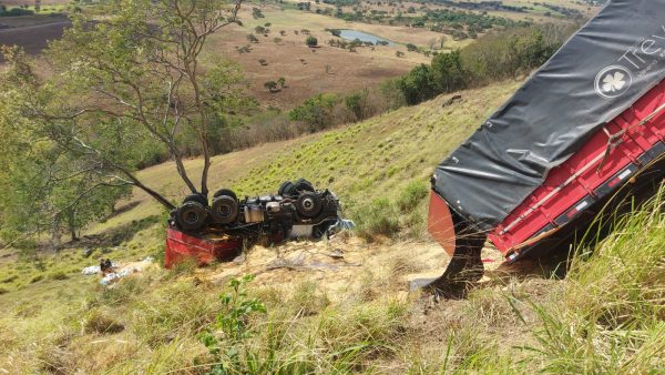 Uma carreta carregada de milho despencou de uma ribanceira às margens da rodovia AL-115, na Serra das Pias, zona rural de Palmeira dos Índios, na madrugada desta sexta-feira (28). O veículo ficou virado de cabeça para baixo em uma área de encosta, com a cabine separada da carroceria e parte da carga espalhada pelo barranco, conforme mostram as imagens registradas no local. O motorista, que seguia de Arapiraca para Garanhuns (PE), conseguiu sobreviver após pular da cabine instantes antes da queda.