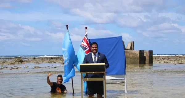 Há anos, as autoridades tuvaluenses tentam alertar a comunidade global da urgência de ações pra combater a crise climática.