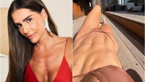 Deborah Secco, de 45 anos, aproveitou o sol para colocar seu biquíni e renovar o bronzeado. Nos Stories do Instagram, a atriz compartilhou uma foto na qual aparece deitada no chão e tomando sol usando um modelo fio-dental na cor marrom. O look praiano deixou o corpo definido da atriz, incluindo o abdômen trincado, em evidência.