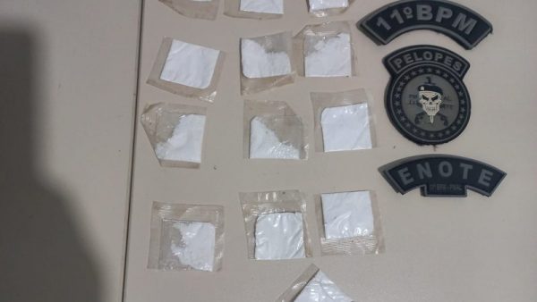 Após buscas dentro do Ônix preto, uma bolsa plástica foi localizada com 14 "maletinhas" com cocaína, acondicionada de maneira típica do tráfico de entorpecentes.