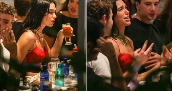 A cantora Dua Lipa, de 30 anos de idade, segue curtindo o Brasil e foi a um jantar com amigos no Rio de Janeiro. A cantora esteve na Gávea, na noite desta terça-feira (18), e foi vista desembarcando de um carro preto com seguranças e amigos. Para a ocasião, ela apostou em um look de calça escura e um top bicolor. No local, Dua comeu espetinhos, se refrescou tomando chopp e caipirinha de limão, e ainda cantou muito as músicas que tocavam no restaurante.