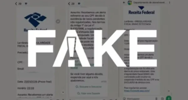 Os conteúdos utilizam logotipos que imitam os da Receita e do governo federal, além de trazerem o nome completo e o CPF das vítimas — o que aumenta a aparência de veracidade e eleva o risco de golpe. Em alguns casos, as mensagens partem de números com códigos internacionais, como do Reino Unido.