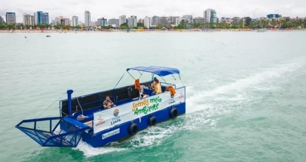Desde dezembro de 2022, Maceió já recolheu mais de 1.657 toneladas de lixo da Lagoa Mundaú e das praias urbanas, com o Ecoboat, embarcação equipada com braço hidráulico para retirar resíduos.