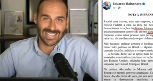 “O tempo todo a gente tem que expor o nível de várzea que é o Moraes com a caneta do STF. O ideal seria ele fora do STF. Trabalharei para isso também, tá, Moraes? Então, quando a gente fala que o visto foi só o começo, é porque o nosso objetivo será te tirar da Corte. Você não é digno de estar no topo do Poder Judiciário. E eu tô disposto a me sacrificar para levar essa ação adiante”, disse Eduardo.