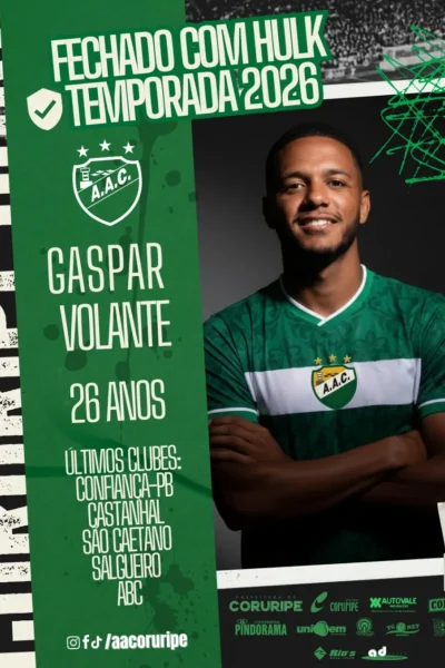A preparação para a temporada 2026 continua com tudo no Coruripe. Com o time disputando o Campeonato Alagoano e a Copa Alagoas na próxima temporada, a diretoria do Verdão começou a se movimentar no mercado de transferências e anunciou 7 reforços ao todo, com 3 sendo anunciados nesta sexta-feira (24).