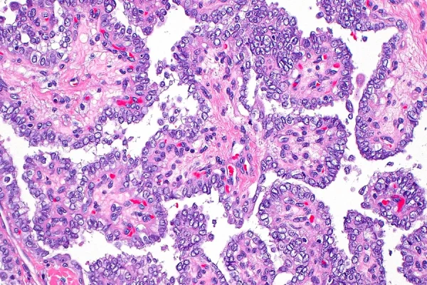 O tumor cresce muito lentamente e costuma se espalhar para os gânglios linfáticos do pescoço. A faixa etária mais prevalente para o início dos sintomas é entre os 30 e 50 anos, e o principal sinal de que algo está errado é a presença de nódulos que podem ser sentidos com os dedos.