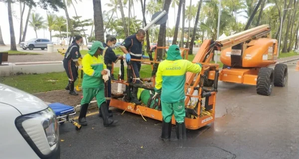 Um trabalhador da empresa Via Ambiental, que presta serviços à Prefeitura de Maceió, ficou ferido na manhã desta quinta-feira (29) após o equipamento que utilizava despencar durante a realização de um serviço de poda.