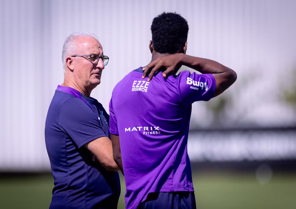 Na última atividade antes da viagem para o interior de São Paulo, Dorival Júnior exibiu um vídeo com instruções táticas antes de ir a campo para realizar os ajustes finais.