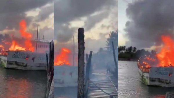 Segundo relato do dono da embarcação, ele havia sido ameaçado por integrantes do Terceiro Comando Puro (TCP), facção criminosa de origem carioca. Após a recusa, o grupo ateou fogo ao barco, utilizado para a pesca de atum e lagosta, principal meio de sustento do proprietário. Veja vídeo do incêndio:
