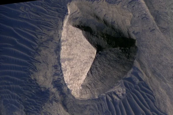 Em tempos de inteligência artificial (IA), muitos podem se questionar se a imagem é verdadeira, mas o tetraedro de Candor, nome dado a estrutura parecida com a pirâmide é real e foi registrado pela primeira vez em 2002, por fotografias de satélite que investigam o planeta vermelho.