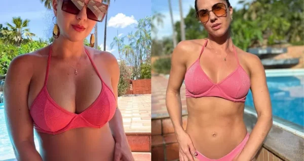 “Coloquei meu antes e depois, tem uma diferença de mais ou menos um ano. Foi um processo lento, mas hoje eu consegui atingir meu peso e meu objetivo. Agora, é fácil de manter. Depois que a gente atinge nosso objetivo, é tranquilo e leve manter”, disse ela.