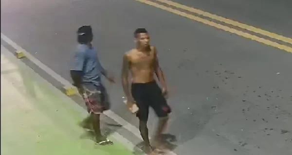Por volta das 18h30, as imagens registraram o indivíduo ameaçando a mulher e transeuntes na Avenida Sílvio Viana. Uma equipe do 1º Batalhão foi acionada.