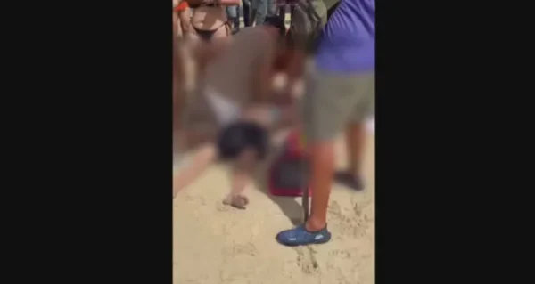 Imagens enviadas à TV Globo mostram o momento em que guarda-vidas e pessoas que estavam na praia tentaram reanimar o homem, que tinha 44 anos. O nome dele não foi divulgado.