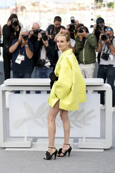 Enquanto isso, Diane Kruger, que está divulgando o filme "Amrum", optou por um blazer estiloso amarelo -- no estilo quimono --, que tinha como "detalhe" um grande laço preto. Usando também uma sandália estilosa, ela foi só sorrisos para os fotógrafos.