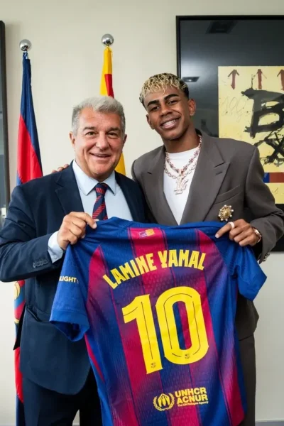 O Barcelona anunciou, nesta quarta-feira (16), que Lamine Yamal será o camisa 10 da equipe a partir da temporada 2025/26. A camisa era utilizada por Ansu Fati, que deixou o clube.