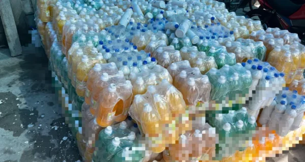 Entre os produtos recolhidos estavam cloro, água sanitária, sabão líquido, desinfetante, polidor de alumínio e detergente — todos sem registro na Agência Nacional de Vigilância Sanitária (Anvisa) e alguns com validade vencida.