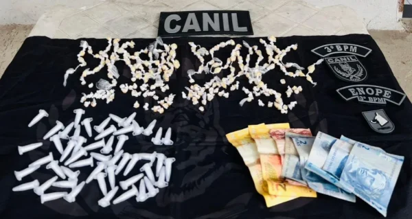Já no bairro Canafístula, durante outra ronda, os militares avistaram dois homens consumindo drogas em um terreno baldio. Ao serem abordados, um dos indivíduos afirmou ser usuário, enquanto o outro confessou ser responsável pelo comércio do entorpecente.
