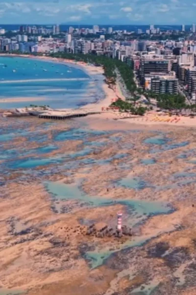 Maceió amanheceu com um espetáculo natural que encantou moradores e turistas na segunda-feira (6). Um fenômeno de maré baixíssima, combinado com a lua cheia, revelou paisagens deslumbrantes nas praias de Ponta Verde e Pajuçara, incluindo o icônico farol — cartão-postal da capital alagoana.
