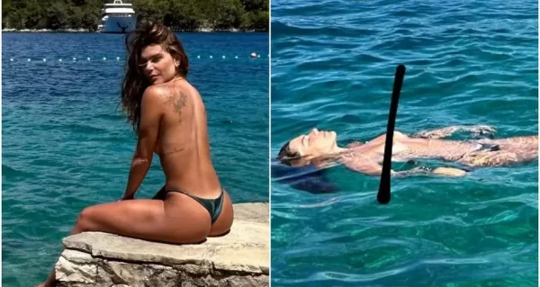 Mariana Goldfarb, de 35 anos, não se intimidou e tirou a parte de cima do biquíni para aproveitar o mar cristalino de uma praia na Croácia. Nesta quarta-feira (9), a influenciadora compartilhou fotos nas quais aparece fazendo topless. Em uma das imagens, ela está relaxando na água com os seios para cima. Já em outra, ela aparece sentada em uma pedra admirando a paisagem.