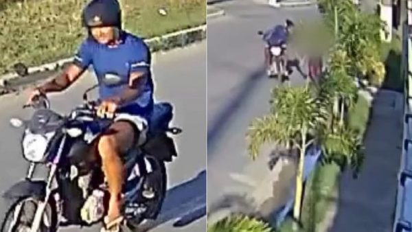 Uma mulher denunciou ter sido vítima de importunação sexual enquanto caminhava pela Rua Governador Francisco Melo, no bairro Antares, parte alta de Maceió. Uma câmera de segurança registrou o momento em que um motociclista passou pela vítima e deu um tapa nas nádegas dela na última segunda-feira (28). Veja abaixo: