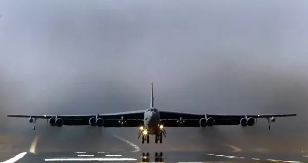 ✈️ O B-52 é um modelo fabricado pela Boeing, com capacidade para ataque nuclear. O avião carrega armas de alta precisão e pode voar por mais de 14 mil quilômetros sem reabastecer. É considerado a espinha dorsal da força de bombardeiros estratégicos dos Estados Unidos.