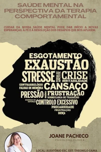 O evento será realizado no auditório da Escola Estadual Theonilo Gama e terá como tema: "Saúde mental na perspectiva da terapia comportamental". A condução ficará por conta da psicóloga clínica Joane Pacheco.