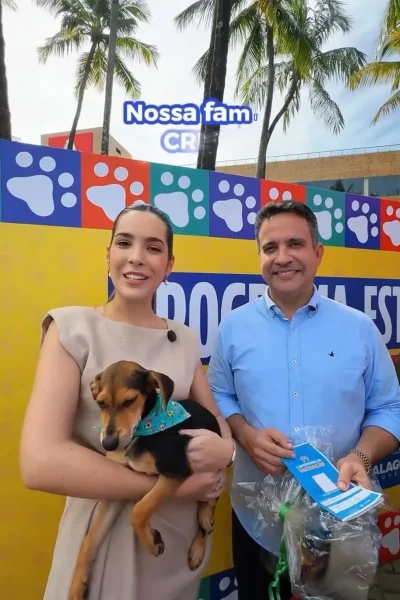 Paulo Dantas e primeira-dama Júlia Britto adotam cadela em feira de adoção em AL