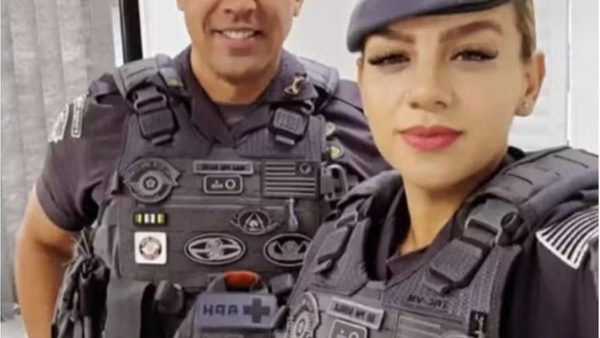 Às 8h55, a policial foi retirada do prédio ainda com vida, em uma maca. O tenente-coronel aparece sentado no corredor.