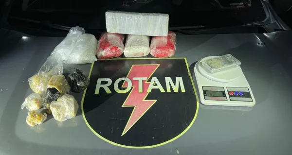 Em um dos cômodos da residência, foram encontrados 2,7 quilos de cocaína, 635 gramas de crack, 555 gramas de maconha e duas balanças de precisão. O suspeito não estava na casa e, mesmo contatado, recusou-se a retornar ao local.