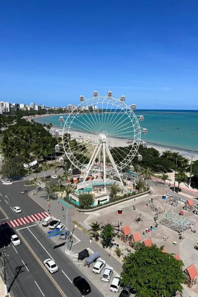 A roda-gigante instalada na orla da Pajuçara chamou atenção horas após abertura ao público. Um detalhe na numeração das cabines gerou debate nas redes sociais: não existe cabine 13 — a sequência vai do número 12 para o “12B”.