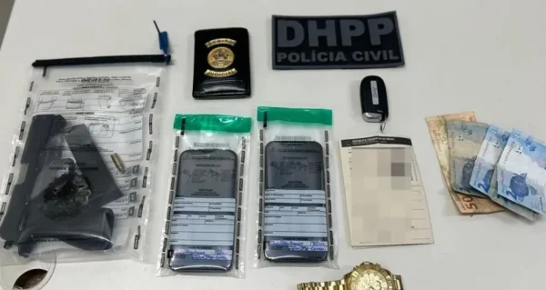 Além disso, também foi encontrada uma carteira funcional falsa de perito. O suspeito confessou a autoria do crime, admitindo ter efetuado os disparos após um desentendimento no trânsito. O homem passará por exames legais e permanecerá custodiado à disposição da Justiça.