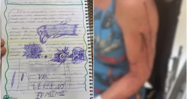 O caso aconteceu na Escola Municipal Monteiro Lobato, de Valparaíso de Goiás, no Entorno do Distrito Federal, na sexta-feira (22). O caderno e a faca, usada no crime pela estudante, foram apreendidos pela Polícia Militar.